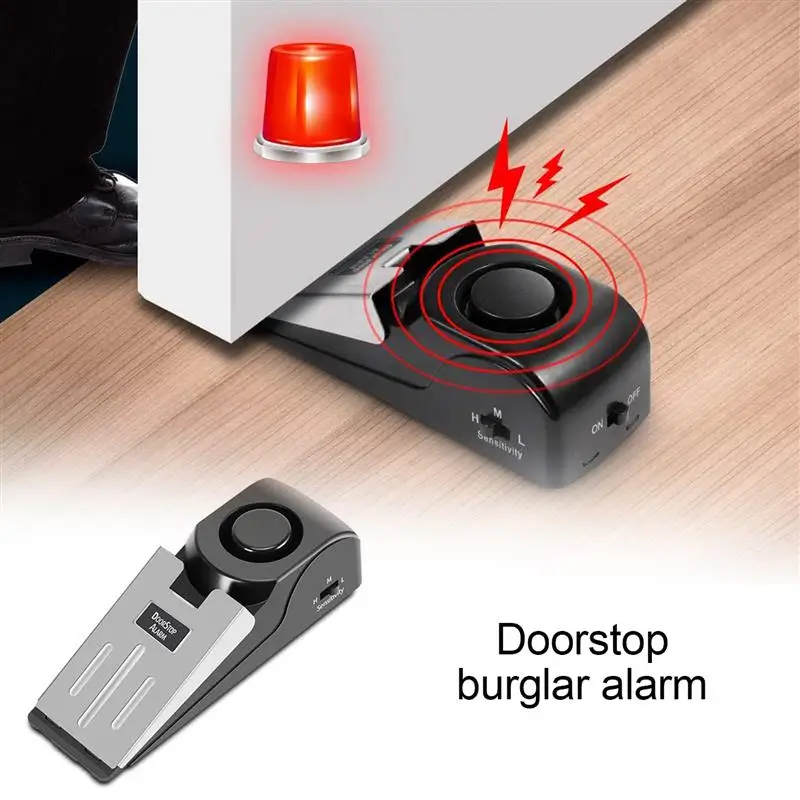 Name: Alarma de Tope de puerta mejorada para el hogar, sistema de seguridad inalámbrico de viaje, alerta de alarma antirrobo, 120dB de cuña de Tope de puerta, portátil